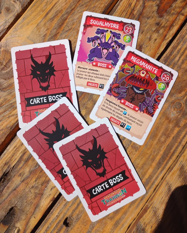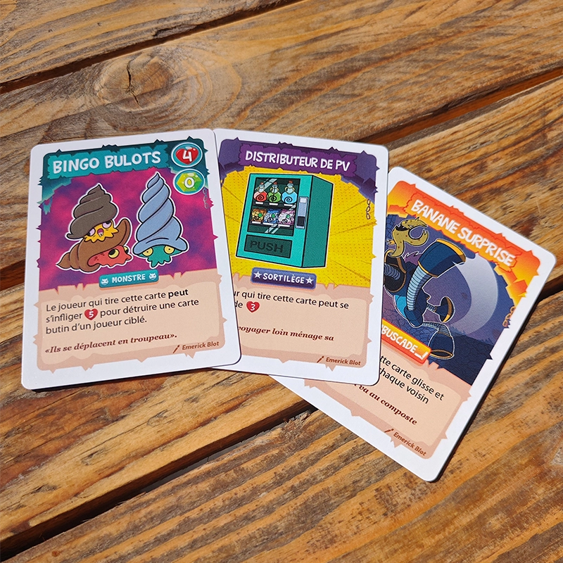Ce travail s’est prolongé dans la création des cartes, avec la volonté d’aller vers des situations plus loufoques et plus imprévisibles. Chaque illustration devait raconter une mini scène, presque comme un gag visuel, capable de renforcer l’esprit de trahison et de rebondissement propre au jeu. L’enjeu était de trouver le bon équilibre entre clarté de lecture, efficacité en jeu et énergie cartoon.